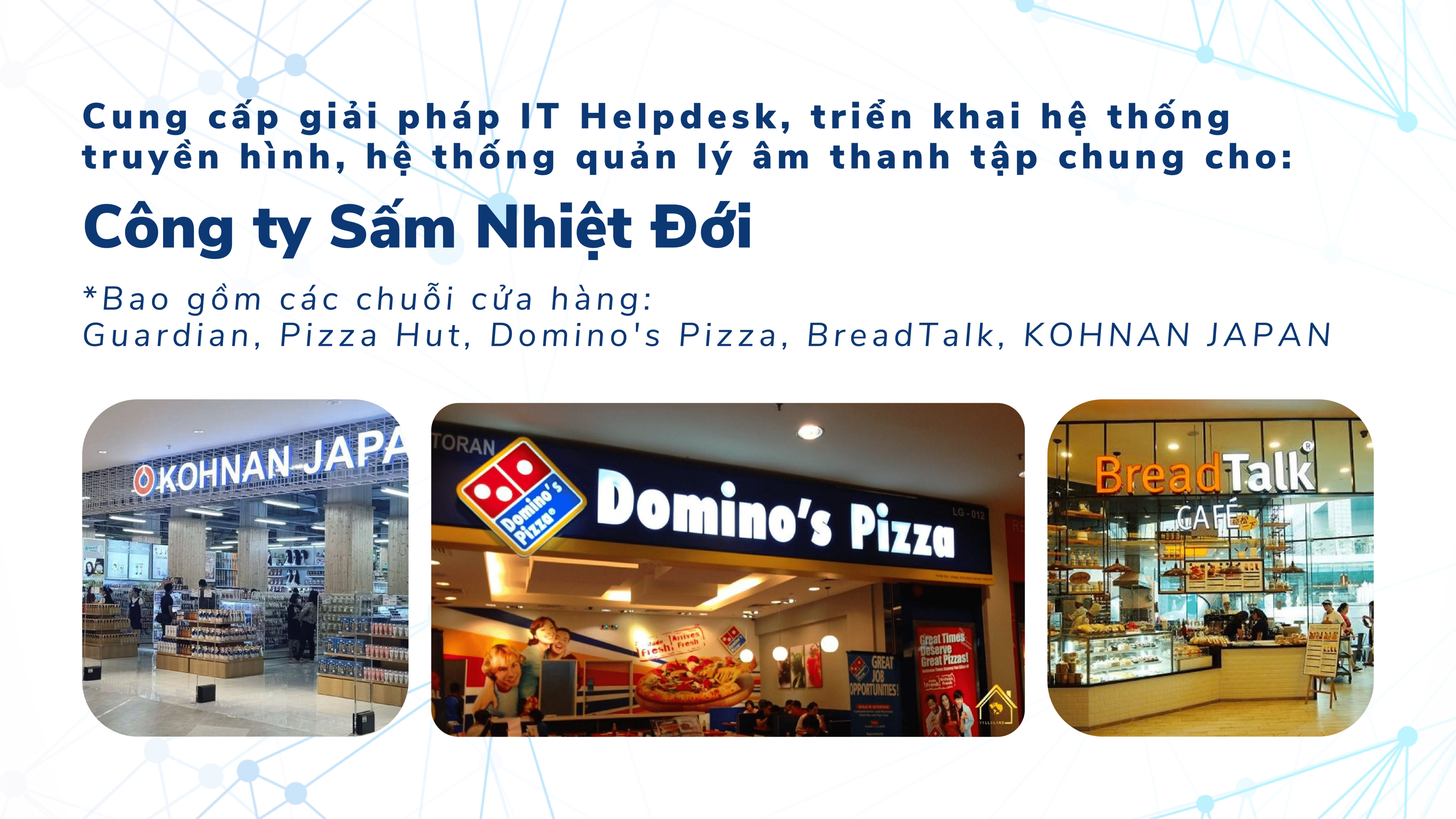 • Khi gặp sự cố về IT như mất mạng nội bộ, lỗi máy tính máy in, sever… nhưng không biết kêu ai? Thuê riêng IT để trực thì quá tốn kém, nhưng gặp tình huống khó thì có chắc là họ xử lý được không? Nhưng lương ít nhất phải mất trên 10 triệu một tháng…